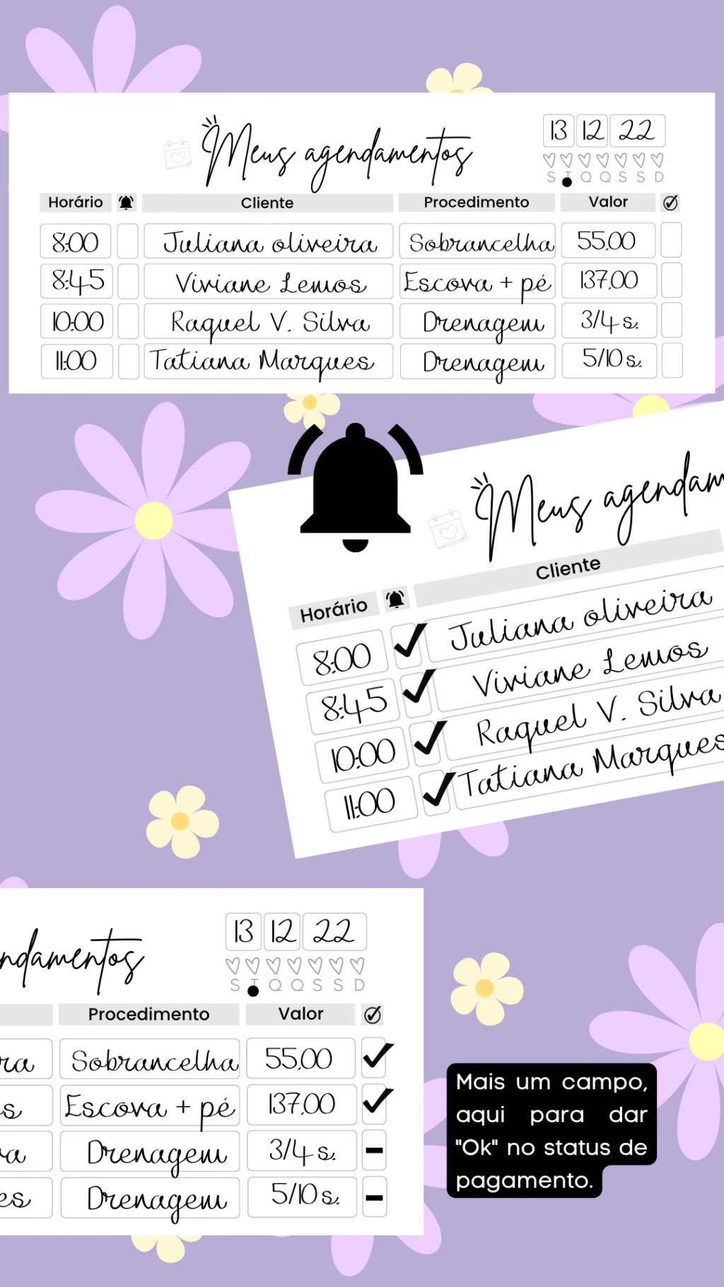 Sinal Lembrete: Um lembrete prático para confirmar agendamentos, ajudando a evitar esquecimentos e garantindo a satisfação dos seus clientes.